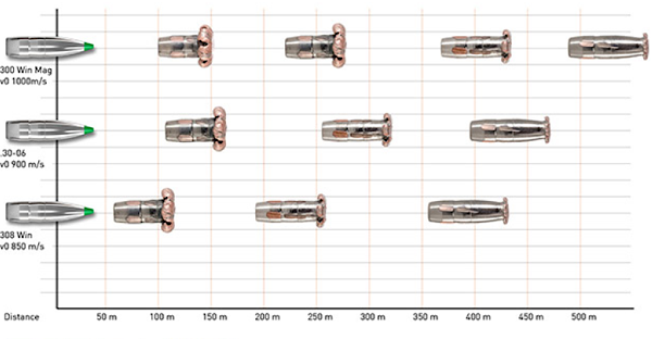Les ogives monométallique ont des V0 plus importantes que les balles en plomb , logique : densité moindre. Mais cela a un avantage , la Vitesse permets une expension homogène..... regardez la pub sako , l’ogive a partir d’un certaine vitesse n’expanse plus.....