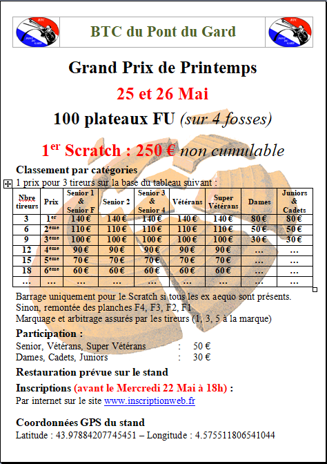 25-26/05/2019 -Pont du Gard-Concours de printemps - 100 FU