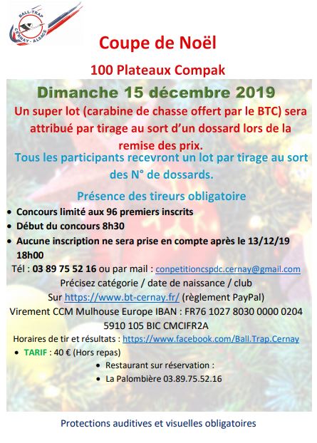 [15/12/2019] Coupe de Noël 100 plateaux Compak Sporting CERNAY