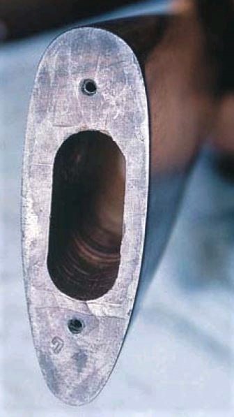 ....Prendre un plomb d’équilibrage pneu ou pêche puis le taper au marteau pour le façonner et l'aplatir un peu, puis visser dedans en le placant dans la crosse.