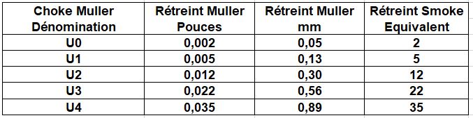 Voici la comparaison du chokage théorique entre les chokes Muller et Smoke.